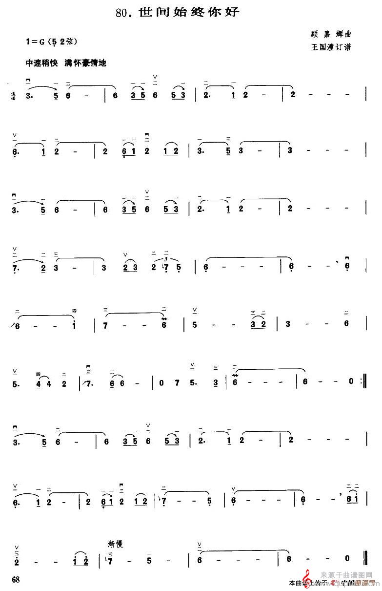 世间始终你好(世间始终你好电子琴二胡乐器独奏歌曲简谱)