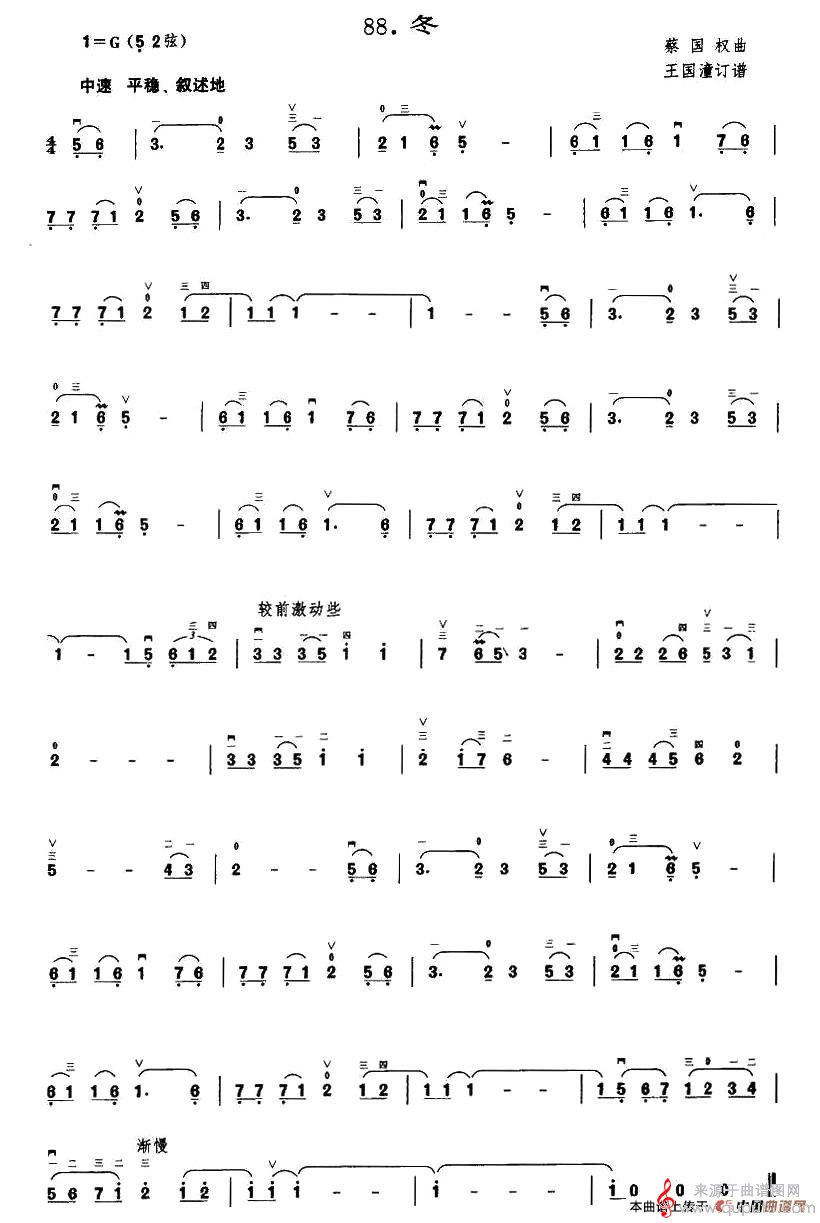 曲谱图网为您提供冬简谱(冬二胡乐器演奏歌曲版)找谱子,就上曲谱图网。