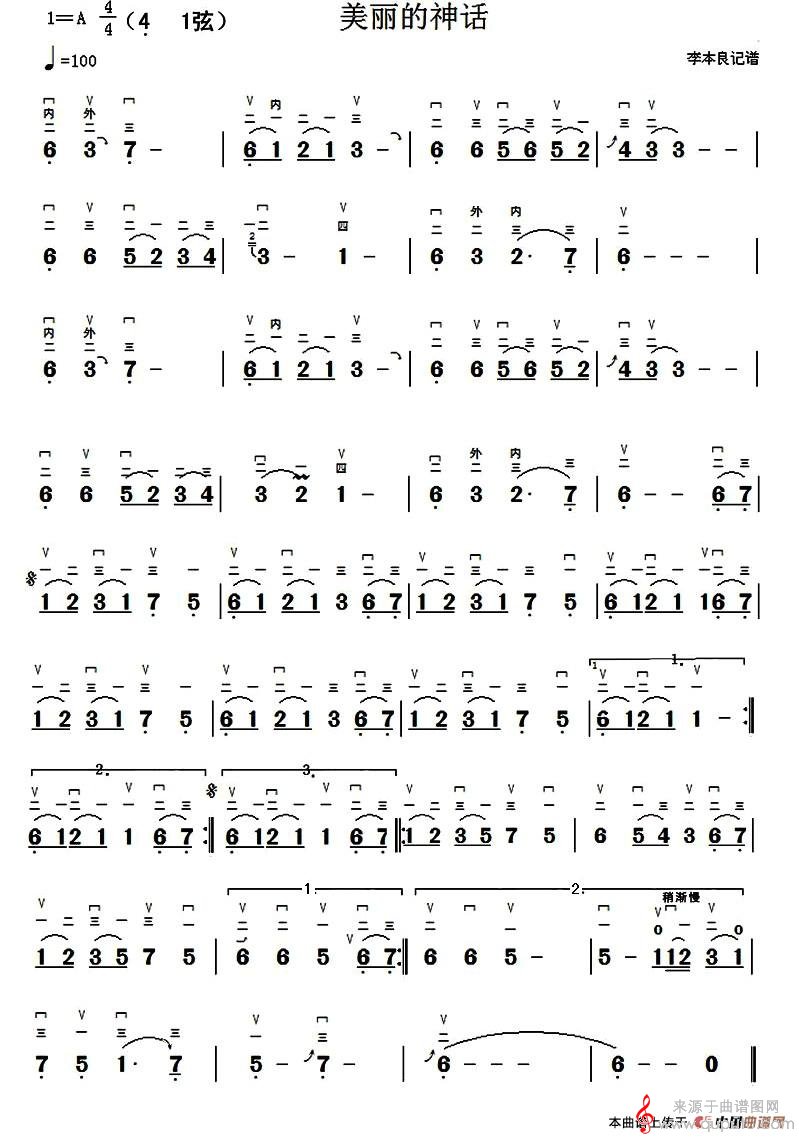 美丽的神话(美丽的神话器乐合奏歌曲版简谱)