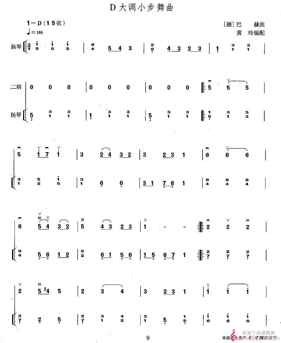 曲谱图网为您提供D大调小步舞曲曲谱(D大调小步舞曲扬琴伴奏谱)找谱子,就上曲谱图网。