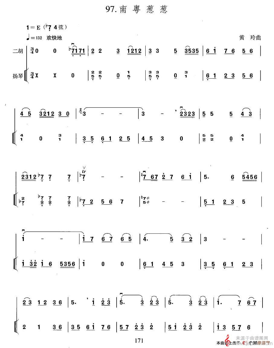 曲谱图网为您提供南粤葱葱(南粤葱葱二胡E调演奏歌曲版)找谱子,就上曲谱图网。