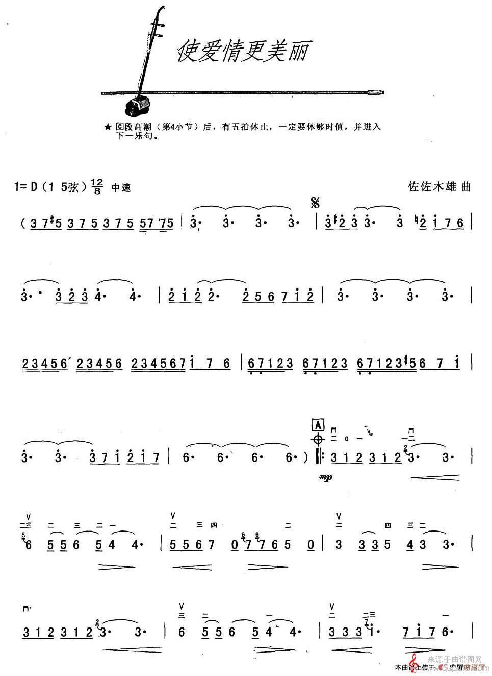 曲谱图网为您提供使爱情更美丽(使爱情更美丽二胡演奏歌曲版)找谱子,就上曲谱图网。