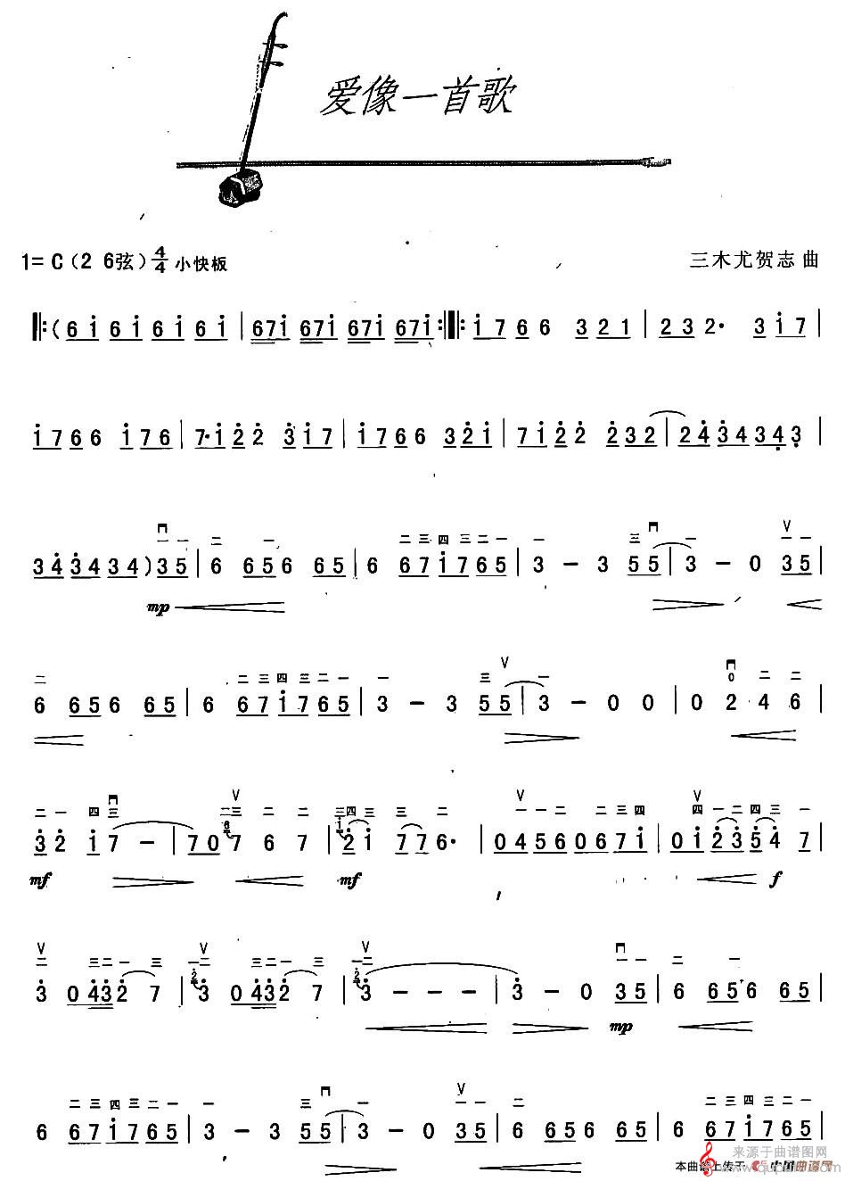 曲谱图网为您提供爱像一首歌(爱像一首歌口琴萨克斯独奏完整歌曲版简谱)找谱子,就上曲谱图网。