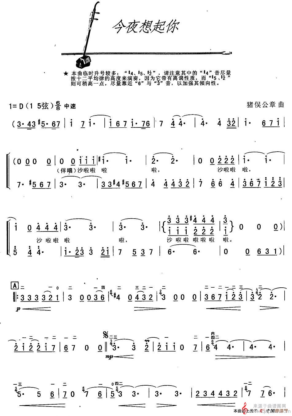 今夜想起你(今夜想起你二胡乐曲曲谱)