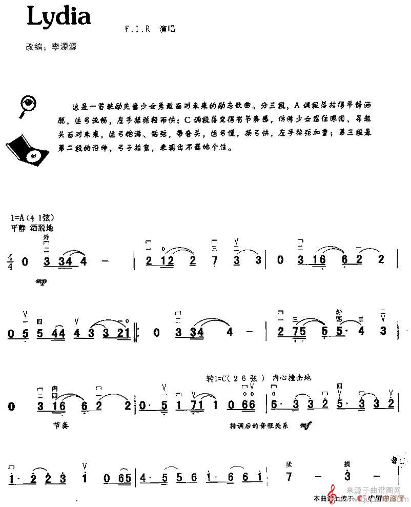 曲谱图网为您提供Lydia(Lydia二胡乐曲曲谱)找谱子,就上曲谱图网。