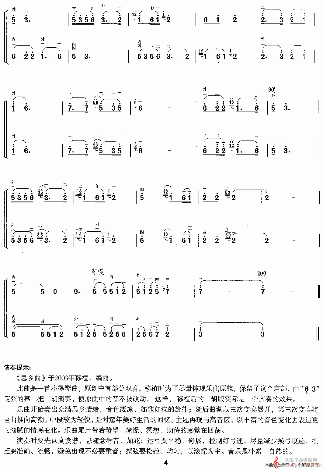 曲谱图网为您提供思乡曲(思乡曲二胡二重奏歌曲版)找谱子,就上曲谱图网。