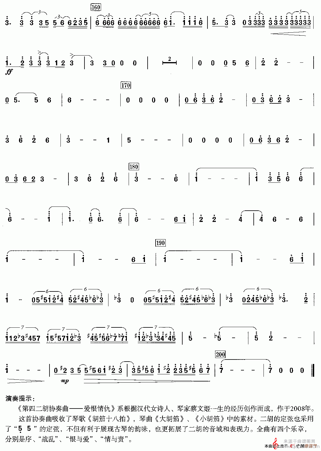 曲谱图网为您提供第四二胡协奏曲:4、情与责(情与责二胡协奏曲简谱)找谱子,就上曲谱图网。