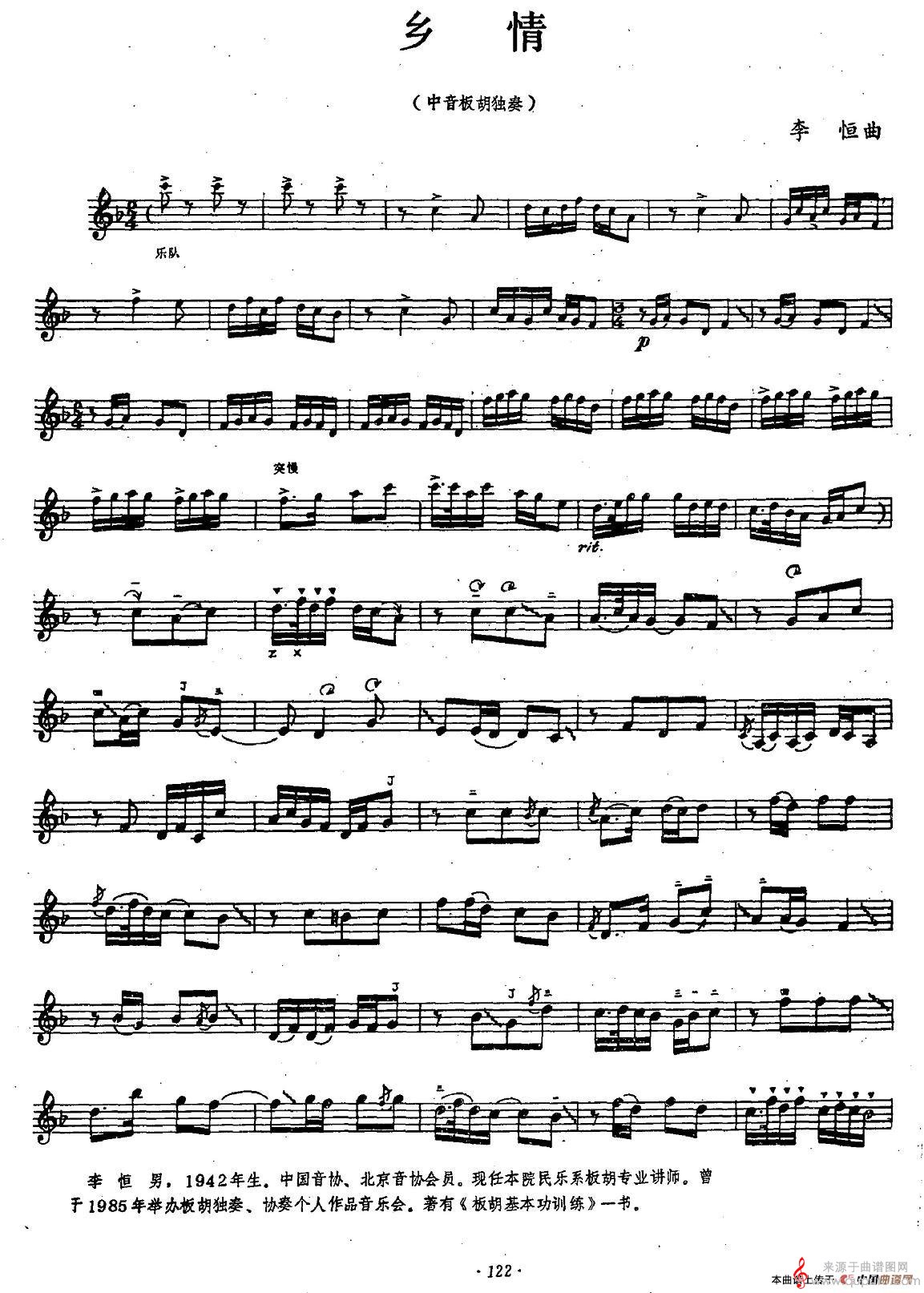 曲谱图网为您提供乡情(乡情中音板胡独奏歌曲简谱)找谱子,就上曲谱图网。