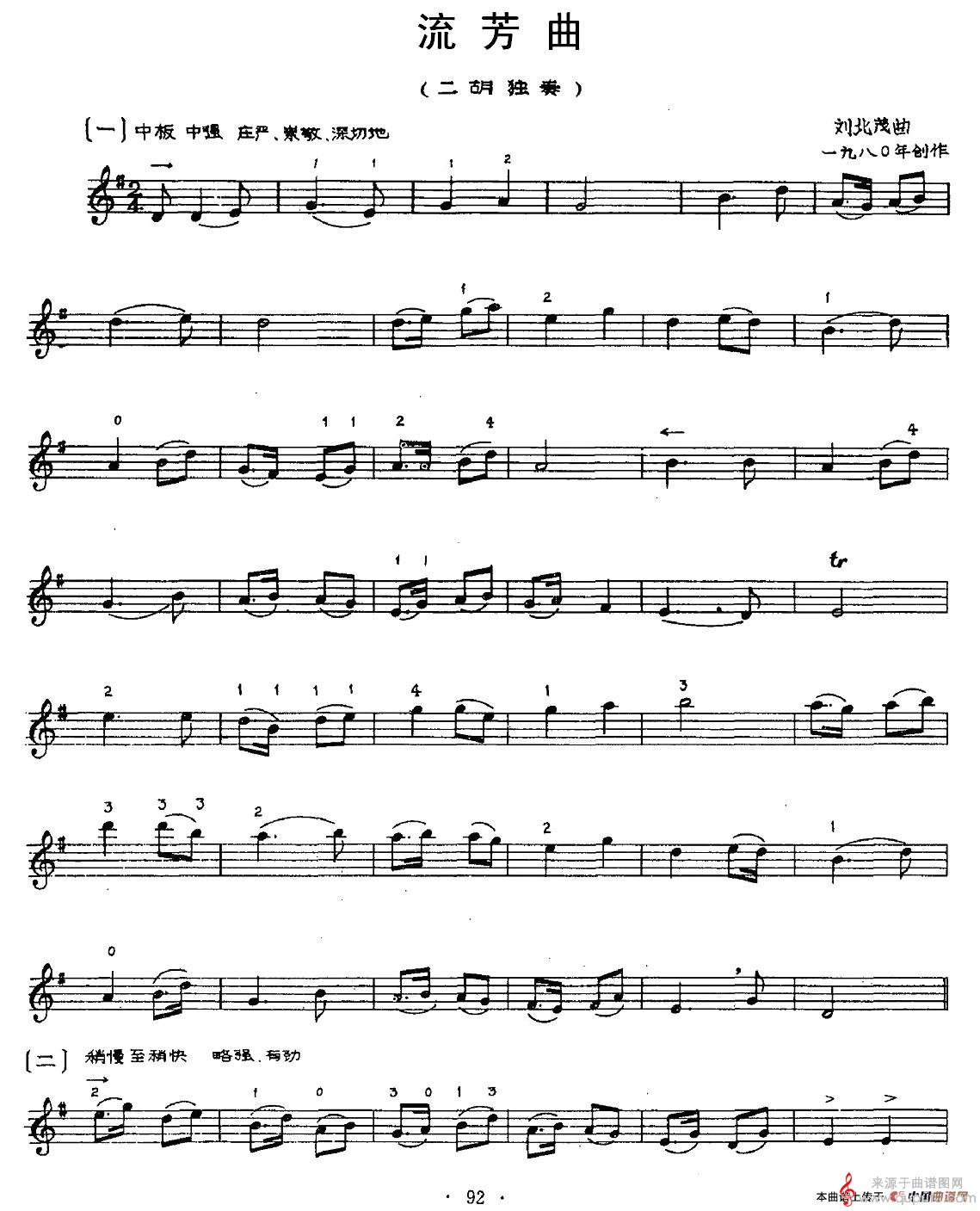 流芳曲曲谱(流芳曲二胡伴奏完整歌曲版简谱)