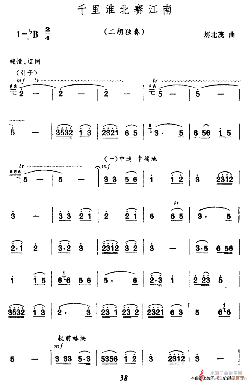千里淮北赛江南简谱(千里淮北赛江南二胡独奏歌曲版)