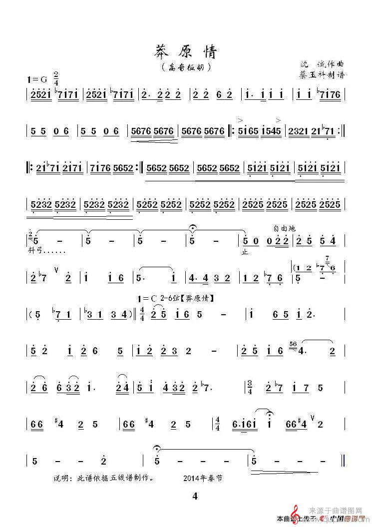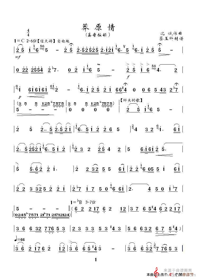 曲谱图网为您提供变调【莽原情】(变调【莽原情】高音板胡独奏曲曲谱)找谱子,就上曲谱图网。