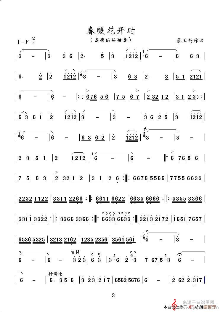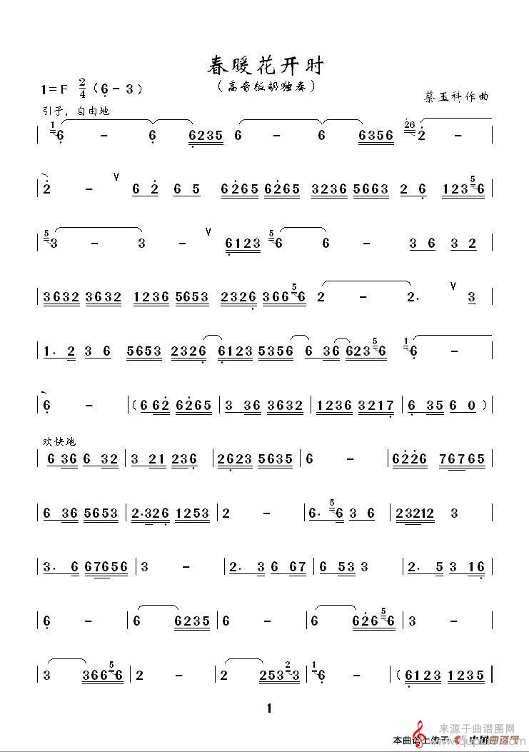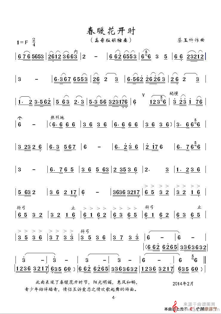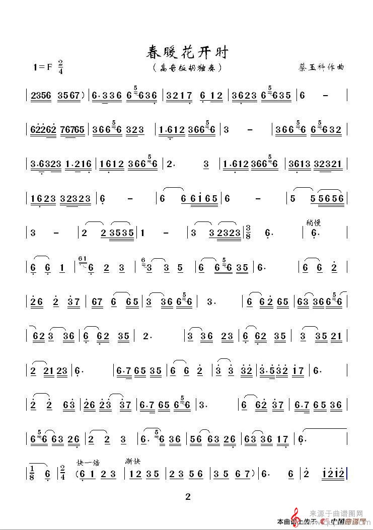 曲谱图网为您提供春暖花开时(春暖花开时高音板胡独奏曲曲谱)找谱子,就上曲谱图网。