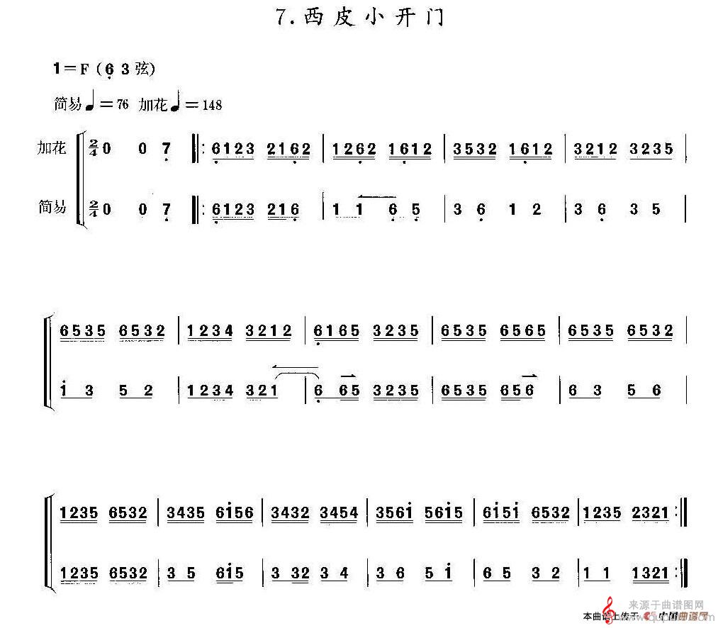 西皮小开门简谱(西皮小开门京胡演奏京剧曲牌版)
