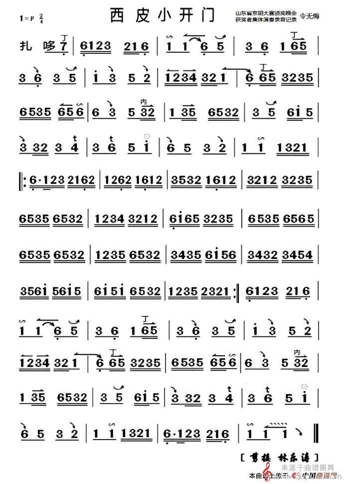 曲谱图网为您提供西皮小开门简谱(西皮小开门京胡演奏京剧曲牌版)找谱子,就上曲谱图网。