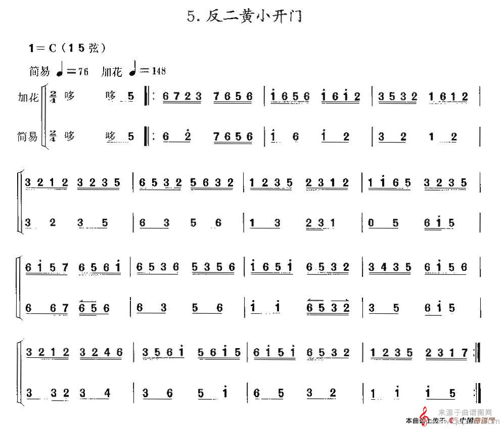 曲谱图网为您提供反二黄小开门(反二黄小开门二胡独奏曲曲谱)找谱子,就上曲谱图网。