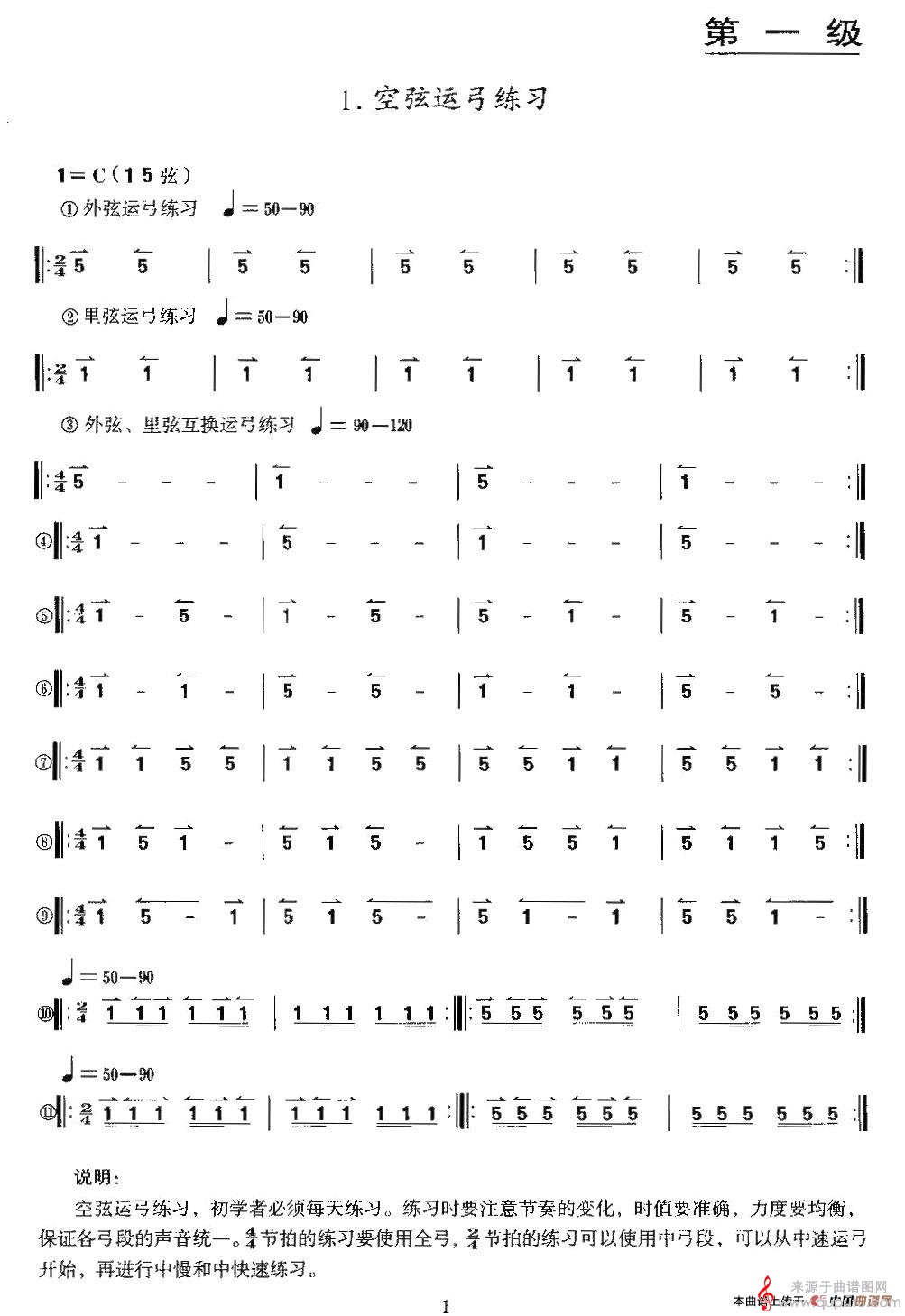 曲谱图网为您提供空弦运弓练习(空弦运弓练习二胡演奏示范曲简谱)找谱子,就上曲谱图网。