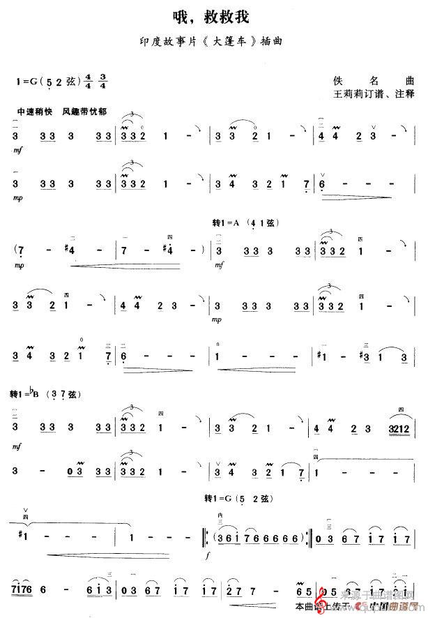 当前位置:曲谱图网器乐曲谱胡琴哦, 救救我(哦, 救救我胡琴乐器演奏歌曲简谱)