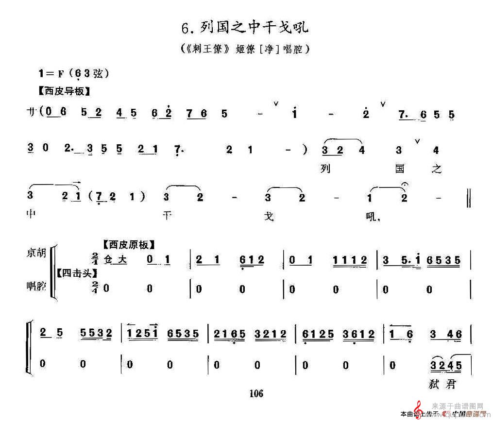 列国之中干戈吼(京剧《刺王僚》选段、京胡考级谱)