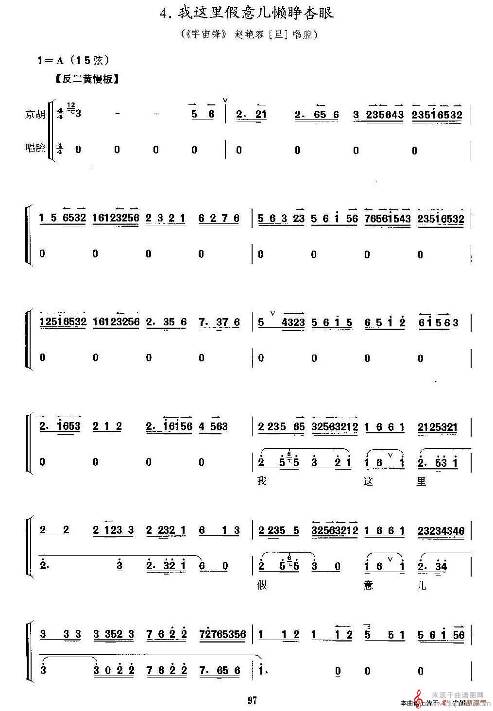 我这里假意儿懒睁杏眼(我这里假意儿懒睁杏眼京胡乐器演奏歌曲简谱)