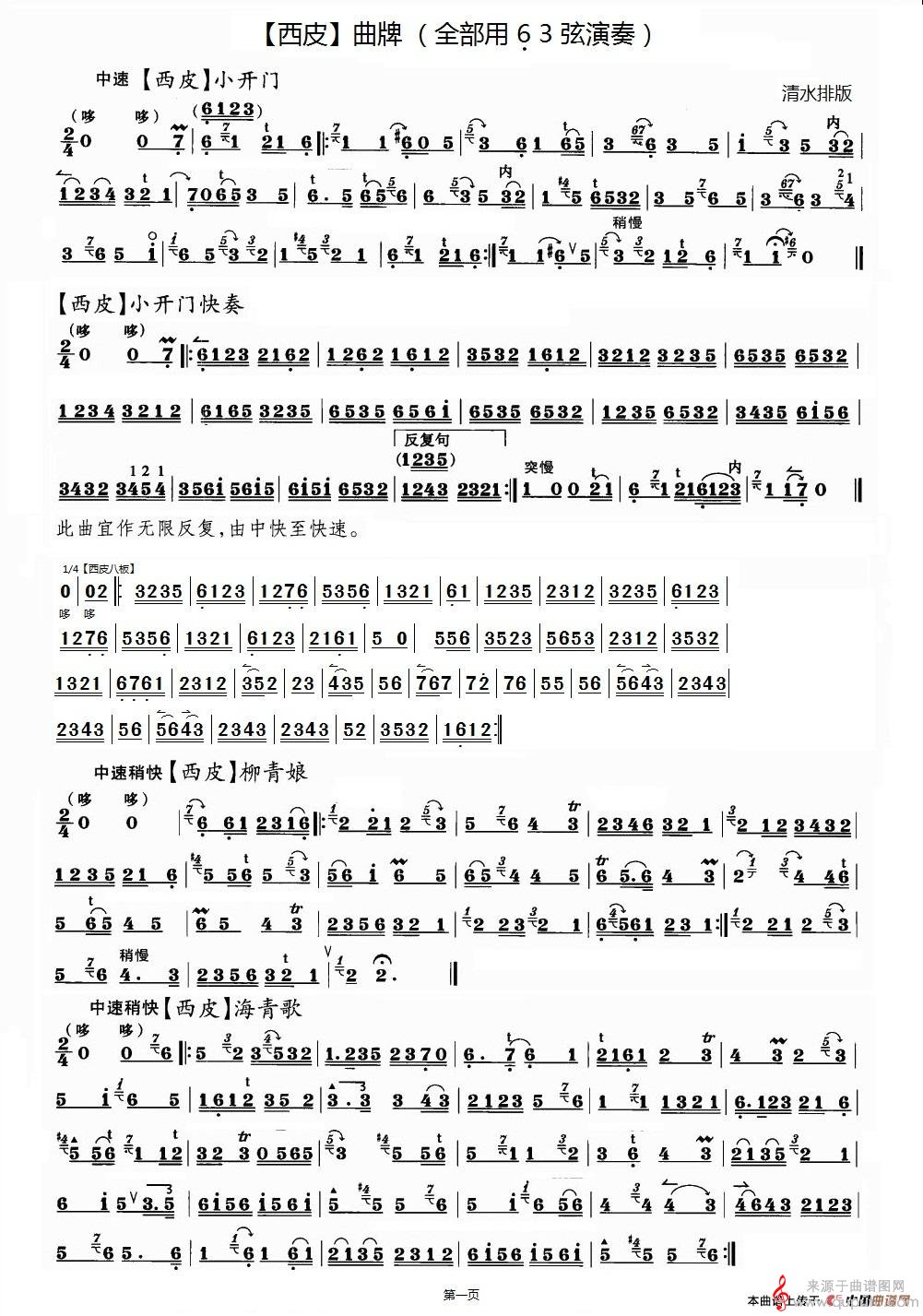 曲谱图网为您提供京胡西皮曲牌练习简谱(京胡西皮曲牌练习示范曲)找谱子,就上曲谱图网。