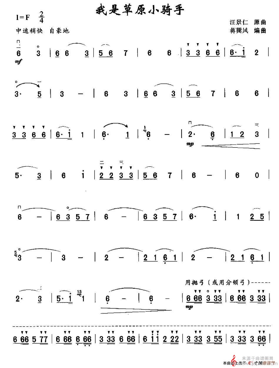 曲谱图网为您提供我是草原小骑手曲谱(我是草原小骑手二胡独奏歌曲简谱)找谱子,就上曲谱图网。