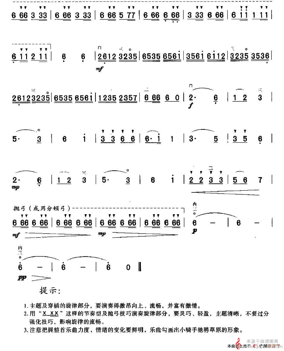 我是草原小骑手曲谱(我是草原小骑手二胡独奏歌曲简谱)