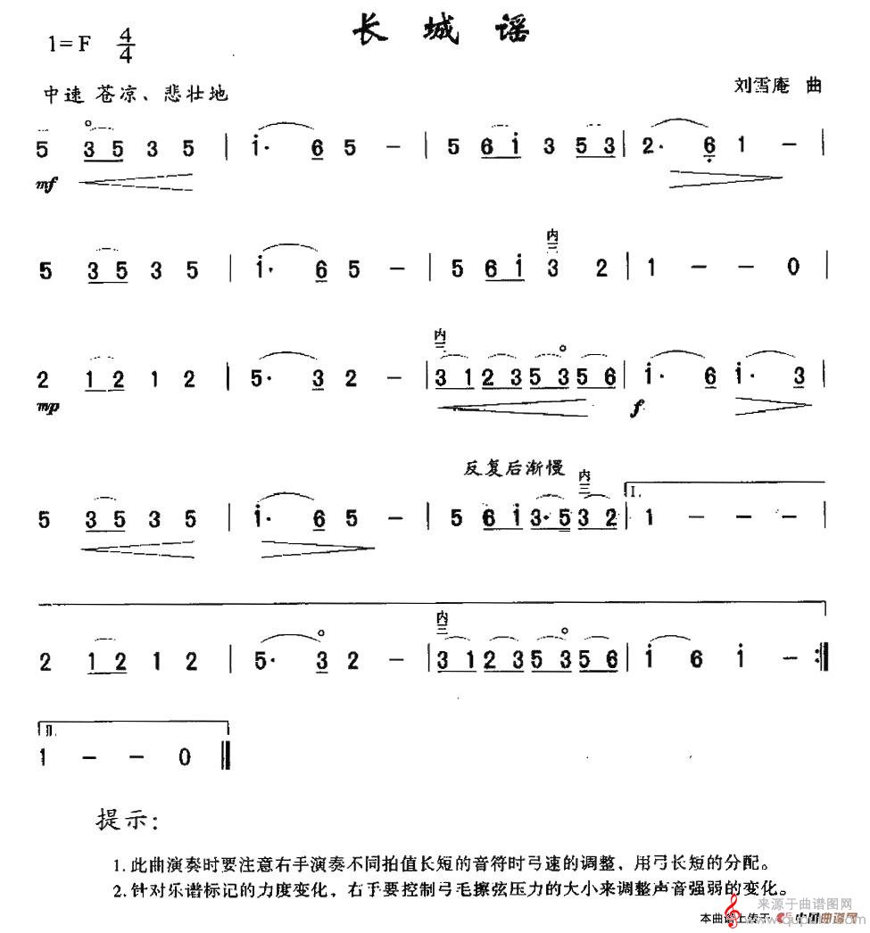 曲谱图网为您提供长城谣(长城谣钢琴二胡伴奏歌曲版)找谱子,就上曲谱图网。