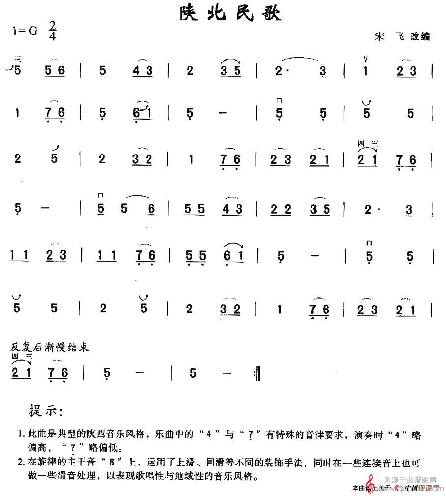 陕北民歌(陕北民歌竹笛二胡演奏歌曲简谱)