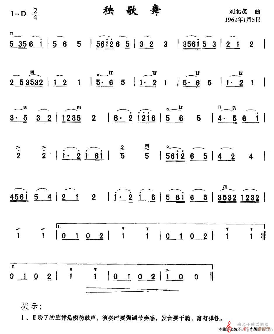 秧歌舞曲谱(秧歌舞二胡乐曲曲谱)