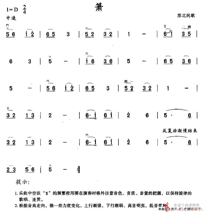 曲谱图网为您提供箫(箫胡琴乐器演奏歌曲曲谱)找谱子,就上曲谱图网。