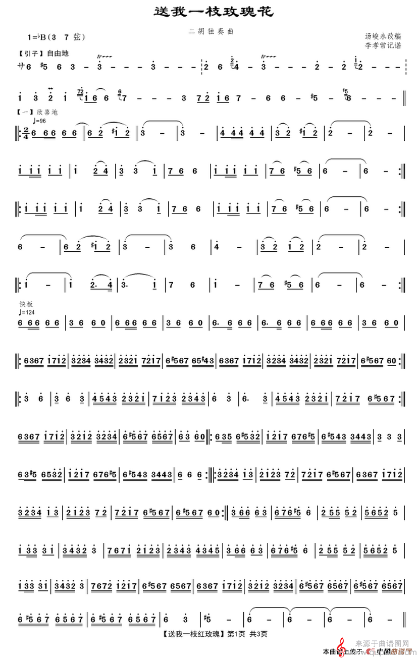 曲谱图网为您提供送我一枝红玫瑰简谱(送我一枝红玫瑰二胡二重奏民乐简谱)找谱子,就上曲谱图网。