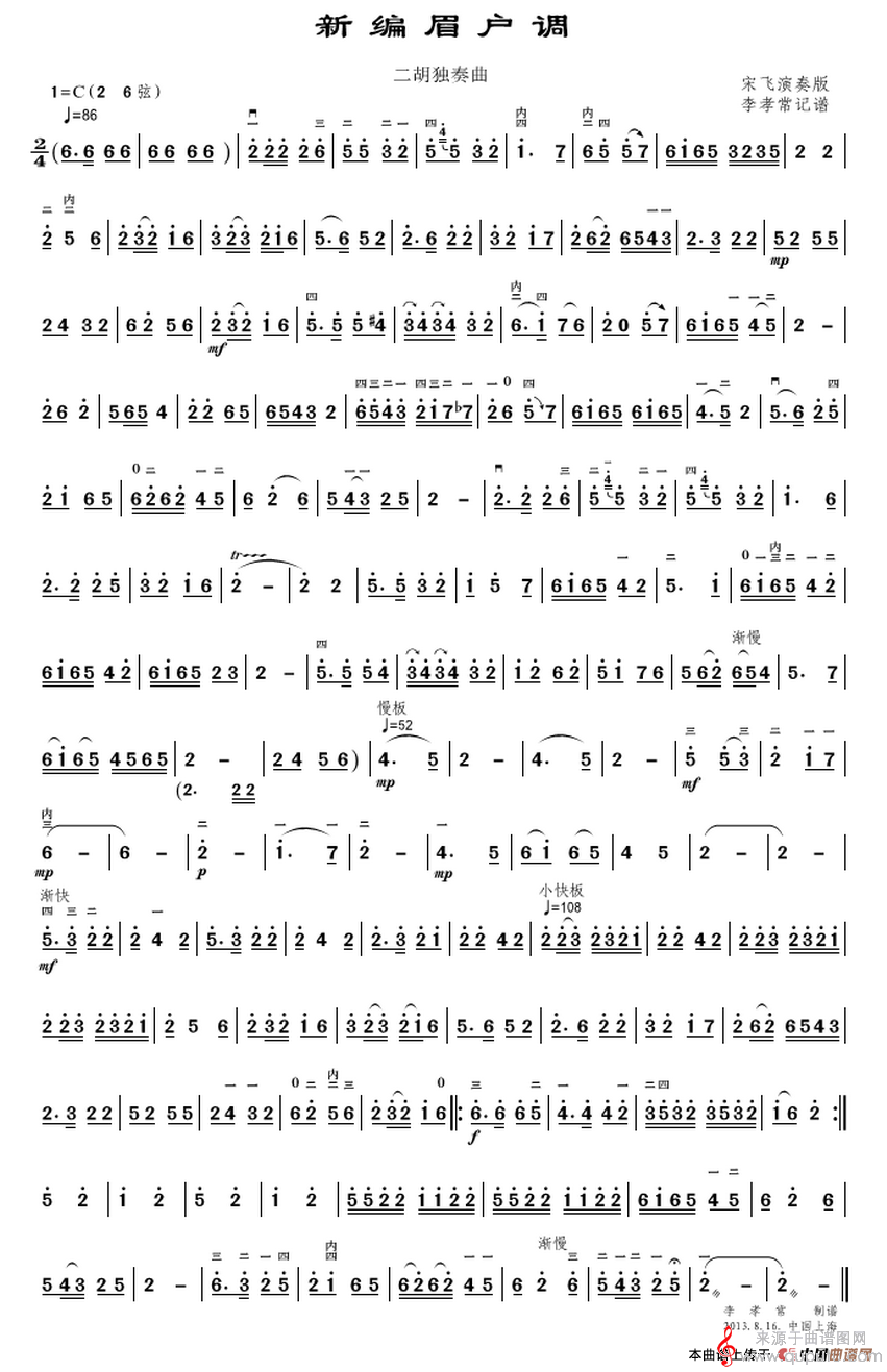 曲谱图网为您提供新编眉户调(新编眉户调二胡乐器独奏歌曲版)找谱子,就上曲谱图网。