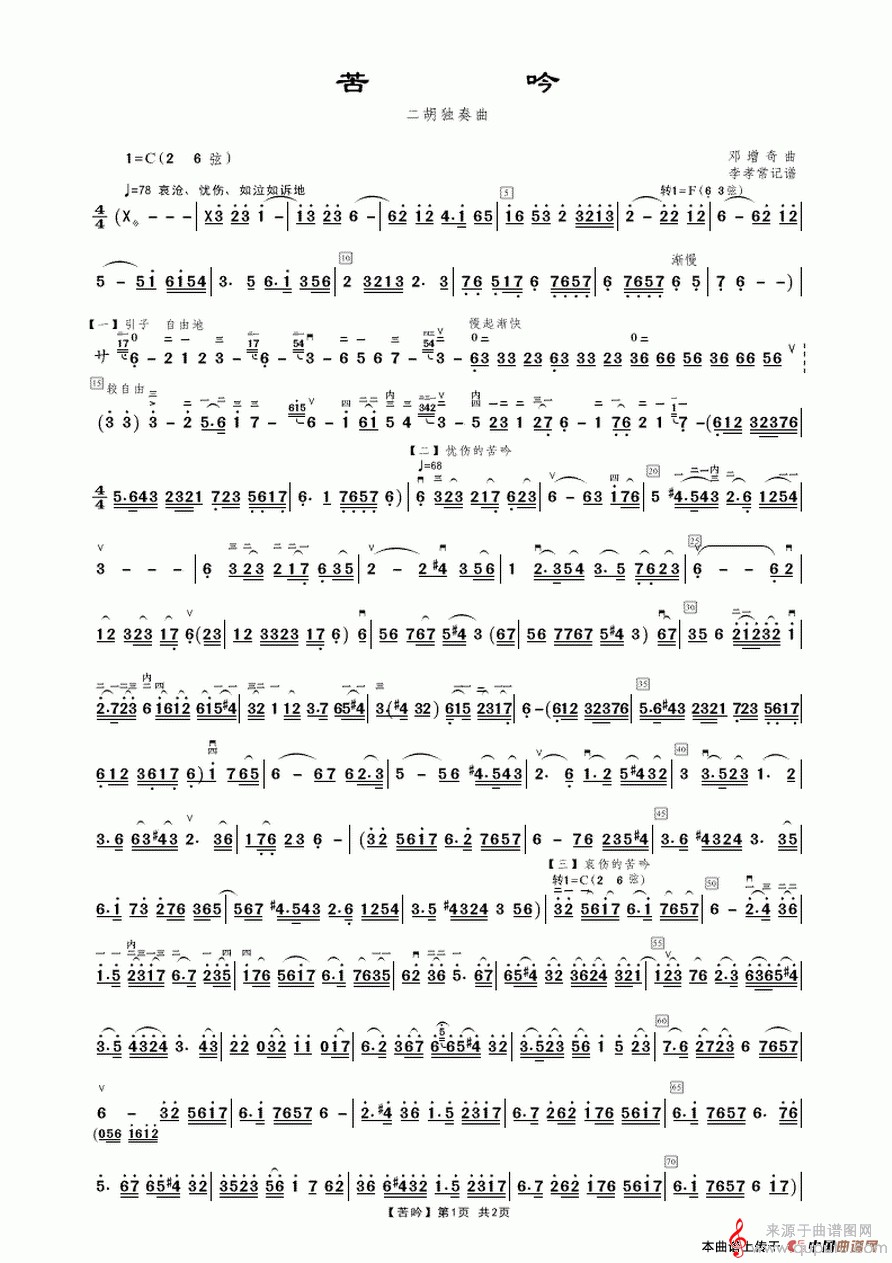 当前位置:曲谱图网器乐曲谱胡琴苦吟简谱(苦吟交响乐演奏歌曲简谱)