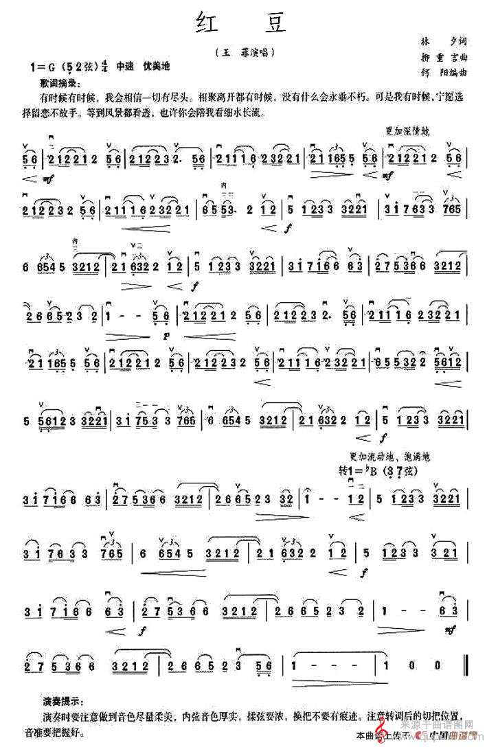 曲谱图网为您提供红豆(红豆笛子古筝二胡独奏歌曲简谱)找谱子,就上曲谱图网。