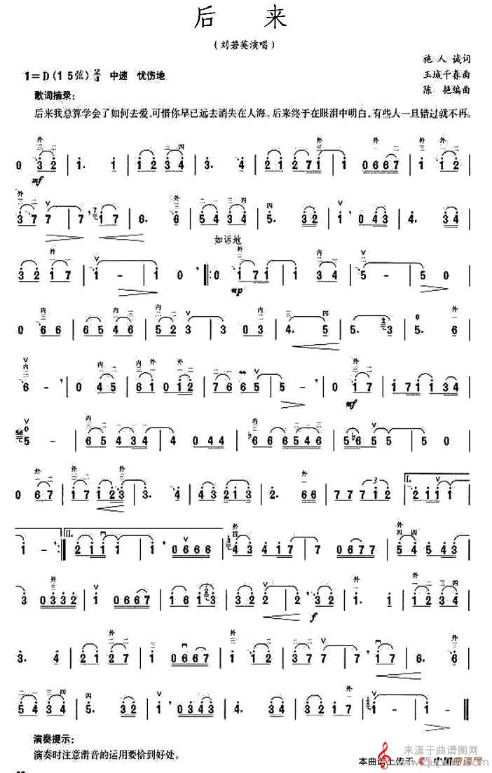 后来简谱(后来长笛胡琴乐曲演奏歌曲版简谱)