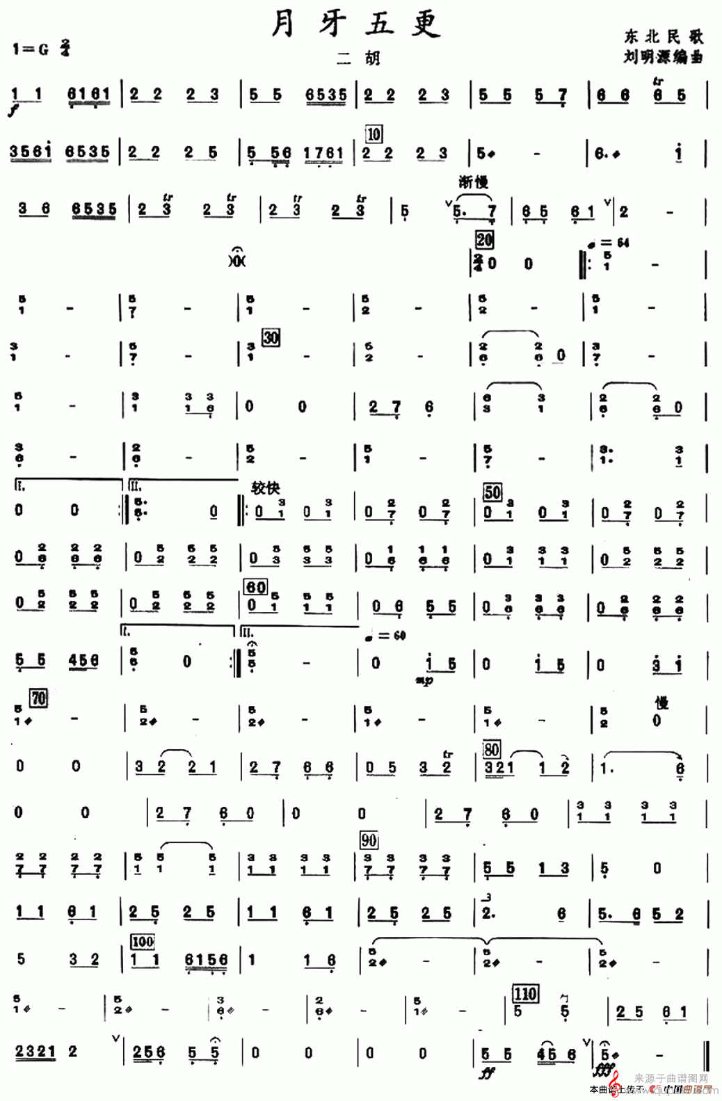 曲谱图网为您提供月牙五更(月牙五更二胡器乐小合奏歌曲简谱)找谱子,就上曲谱图网。