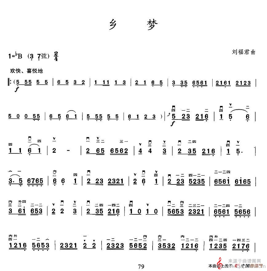 曲谱图网为您提供乡梦(乡梦竹笛二胡乐曲双重奏歌曲版)找谱子,就上曲谱图网。