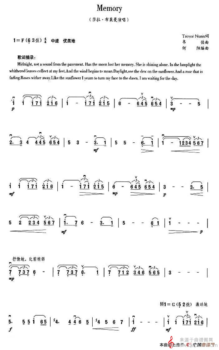 曲谱图网为您提供Memory简谱(Memory小提琴钢琴演奏歌曲简谱)找谱子,就上曲谱图网。