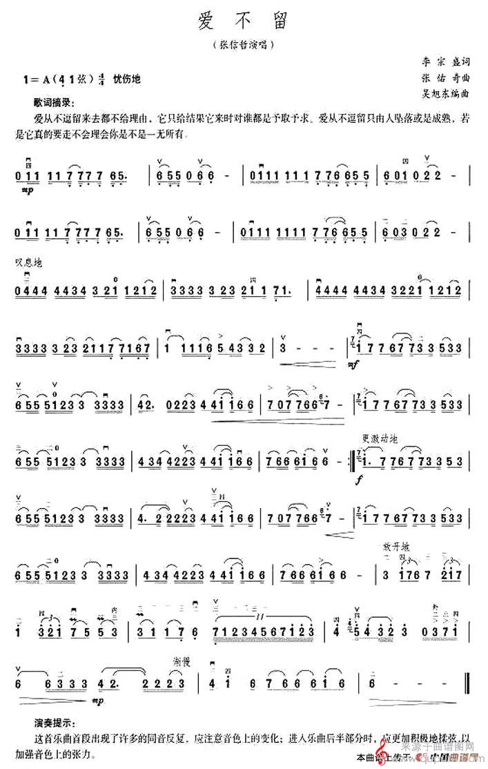 爱不留(爱不留二胡乐器演奏歌曲曲谱)