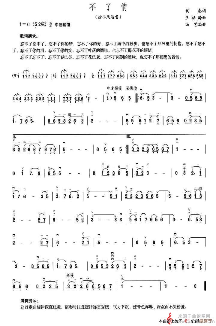 不了情简谱(不了情二胡独奏歌曲曲谱)