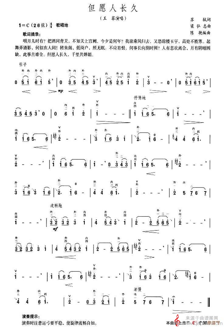 当前位置:曲谱图网器乐曲谱胡琴但愿人长久简谱(但愿人长久琴筝合奏歌曲简谱)