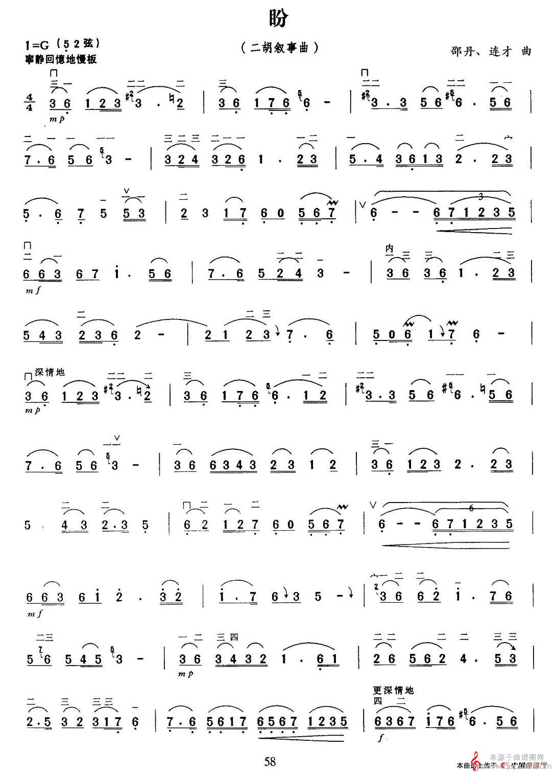 曲谱图网为您提供盼(盼二胡叙事曲简谱)找谱子,就上曲谱图网。