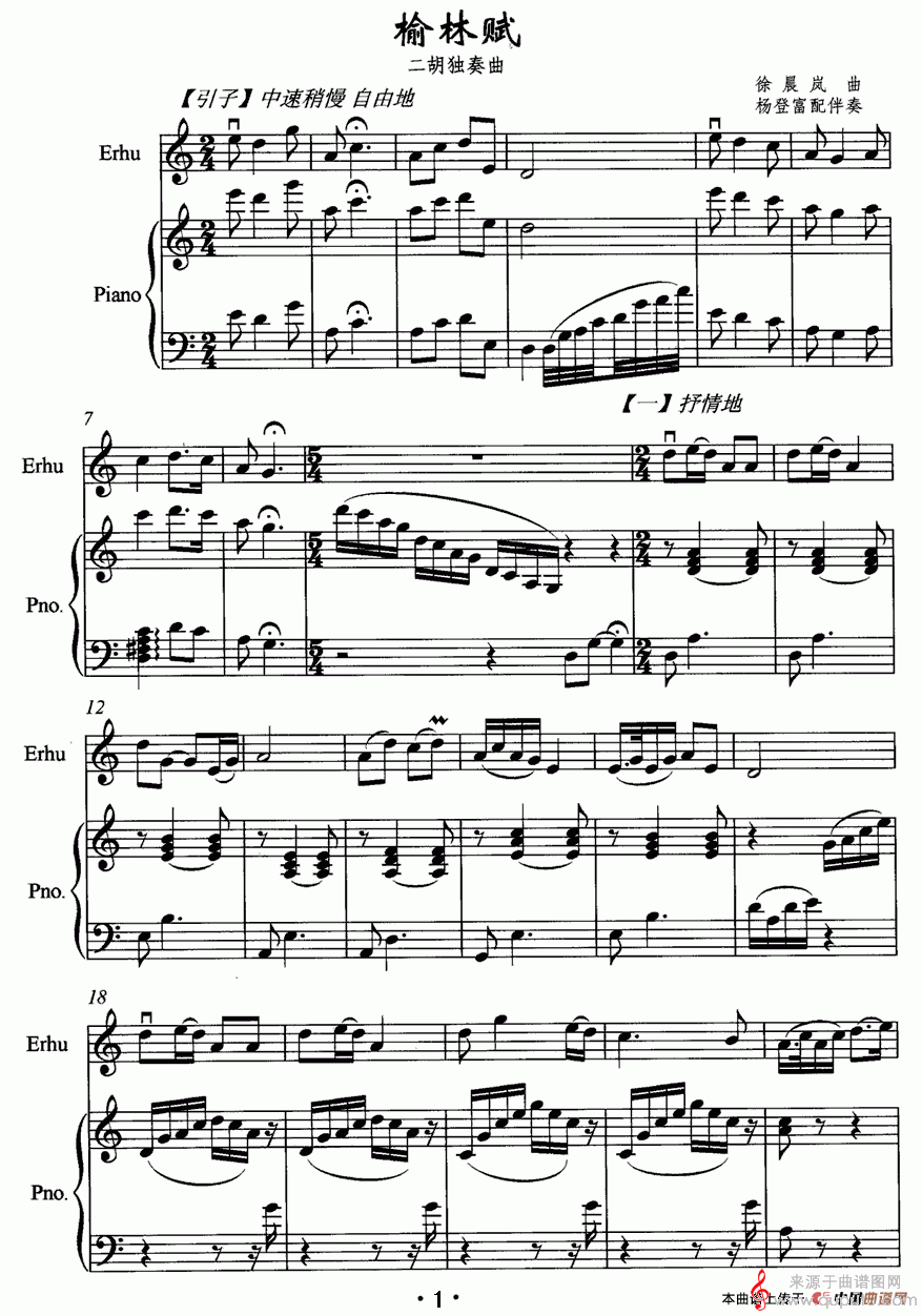 曲谱图网为您提供榆林赋(榆林赋二胡独奏+钢琴伴奏歌曲简谱)找谱子,就上曲谱图网。