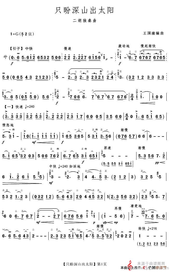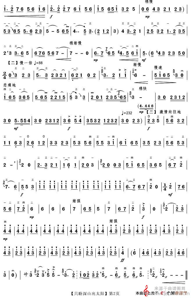 曲谱图网为您提供只盼深山出太阳(只盼深山出太阳二胡独奏曲简谱)找谱子,就上曲谱图网。