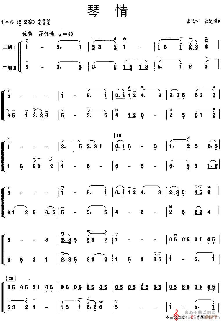 曲谱图网为您提供琴情(琴情二胡二重奏歌曲版)找谱子,就上曲谱图网。