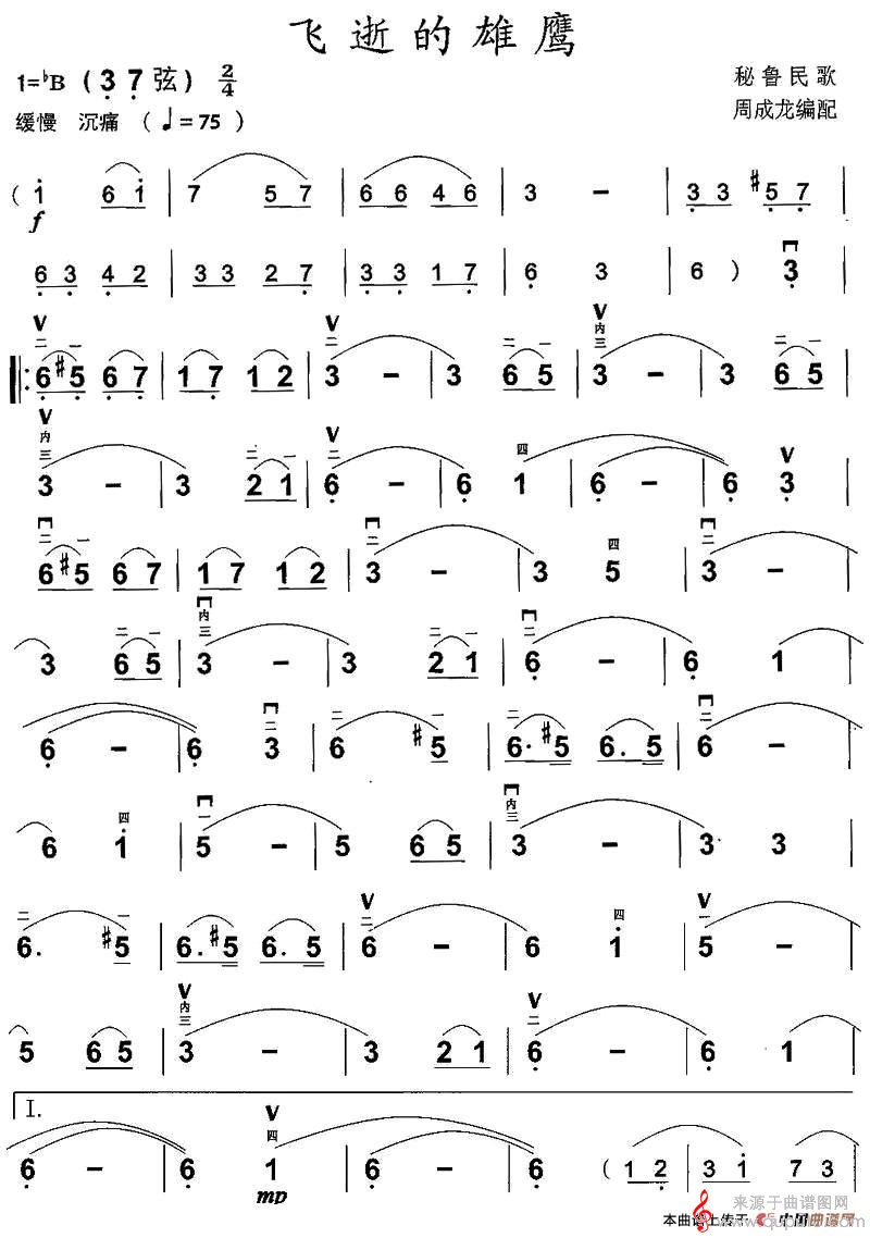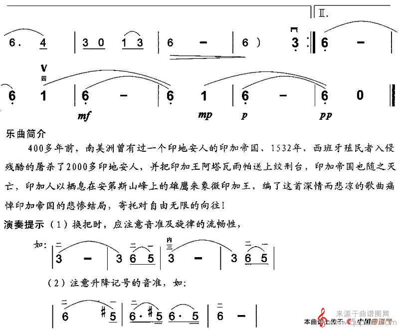 曲谱图网为您提供秘鲁民歌飞逝的雄鹰(印第安民歌歌词歌曲简谱)找谱子,就上曲谱图网。