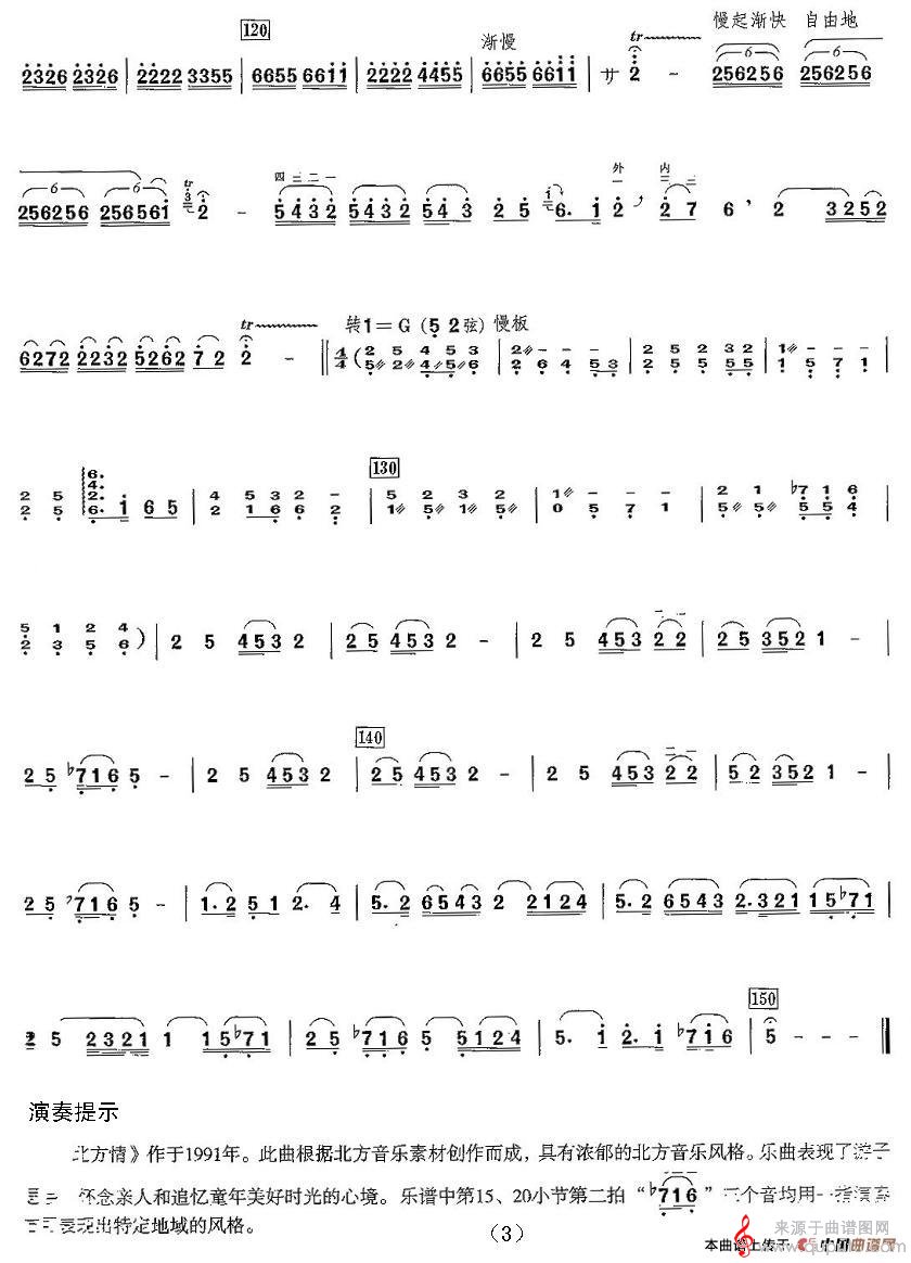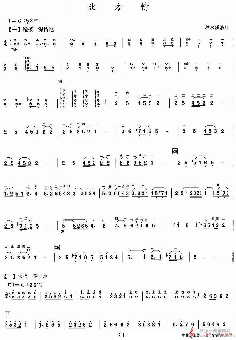 曲谱图网为您提供段永强版北方情(原创胡琴曲谱简谱歌谱)找谱子,就上曲谱图网。