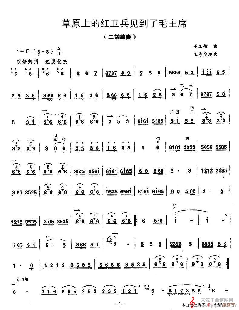 曲谱图网为您提供草原上的红卫兵见到了毛主席胡琴谱(王寿庭版简谱歌词歌曲)找谱子,就上曲谱图网。
