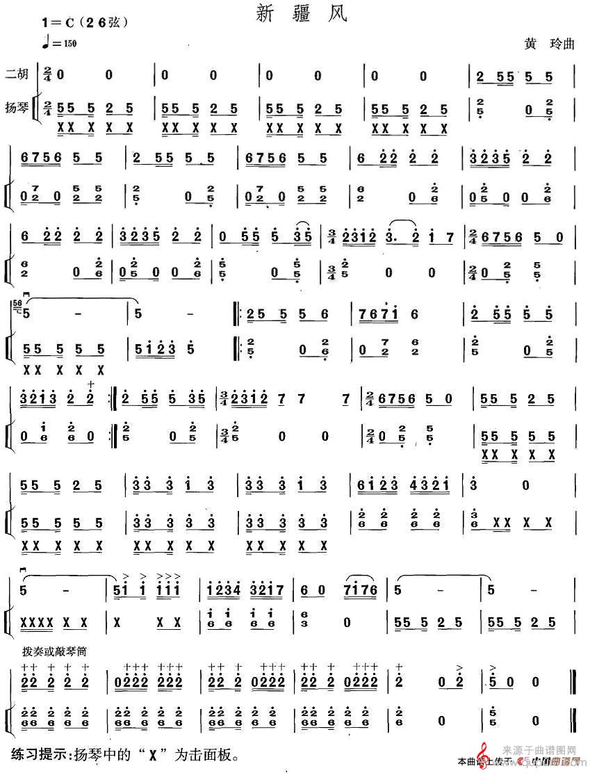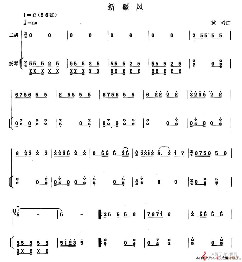 曲谱图网为您提供新疆风乐谱(扬琴伴奏谱歌曲简谱二胡谱)找谱子,就上曲谱图网。