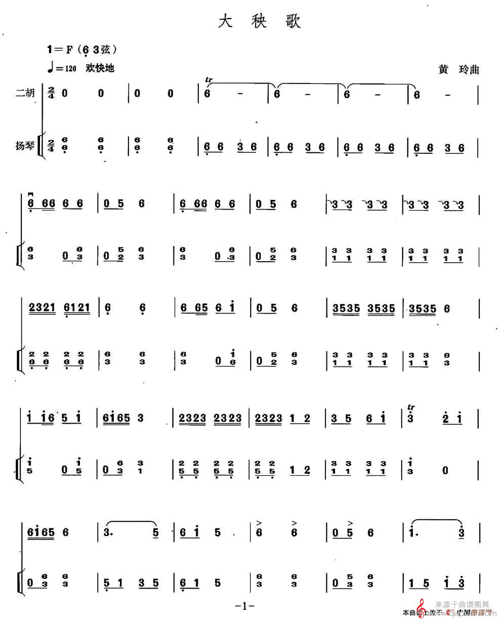 曲谱图网为您提供大秧歌胡琴谱(扬琴伴奏谱简谱原创二胡谱曲谱)找谱子,就上曲谱图网。